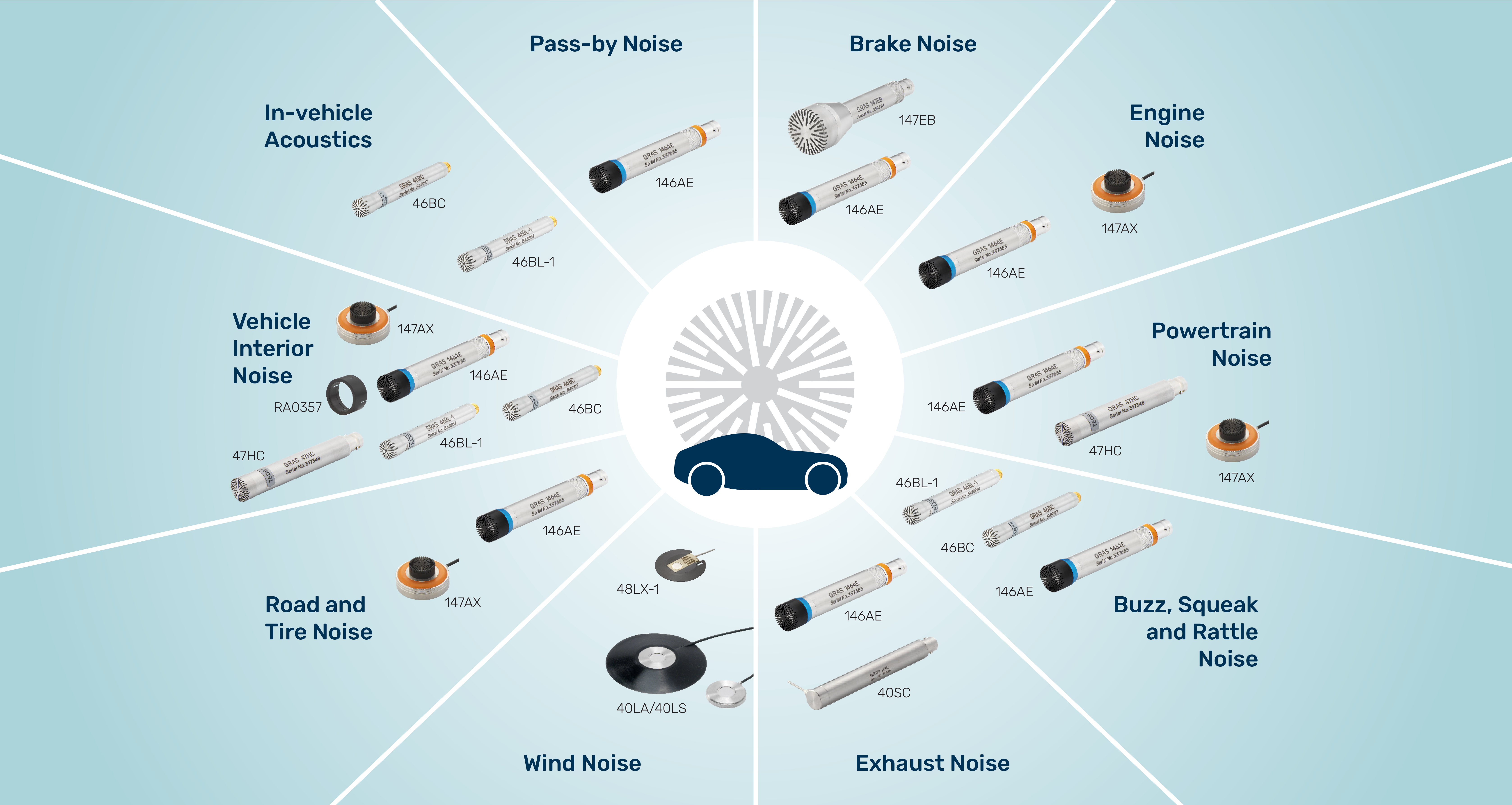 The new and improved GRAS microphones secure efficient and reliable acoustic NVH testing.