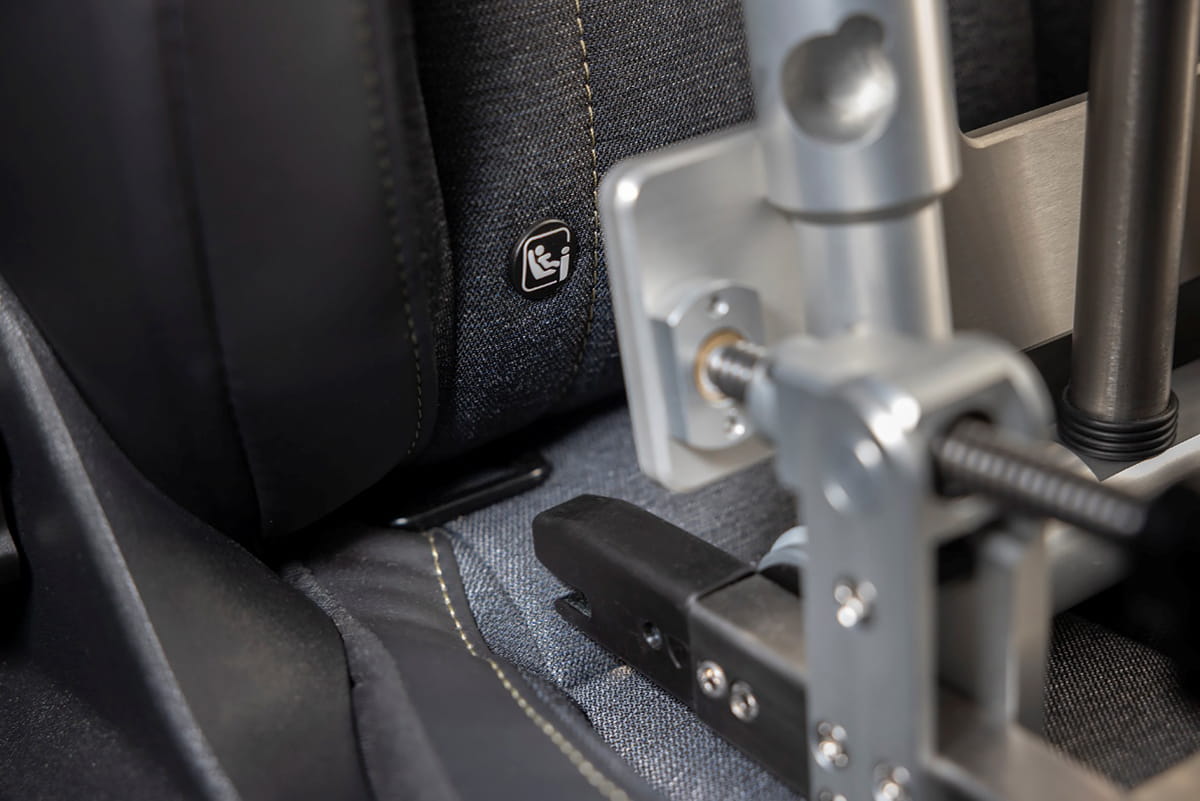 For vehicles or test setups without integrated ISOFIX anchor points, standard or custom ISOFIX adapters can be used to ensure a secure installation. In addition, every AutoKEMAR includes telescopic arms and a ratchet lashing strap system, allowing the Seat Mount to be firmly secured even when ISOFIX is not available.