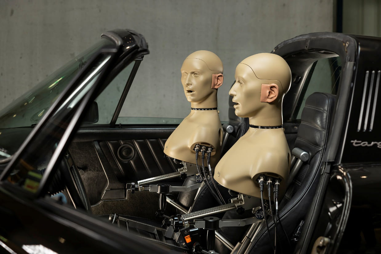 This advanced fixture allows precise head and torso movement across all typical seating and driving positions, and even more extreme or unconventional setups, such as those representing very short or tall occupants, or relaxed resting positions.